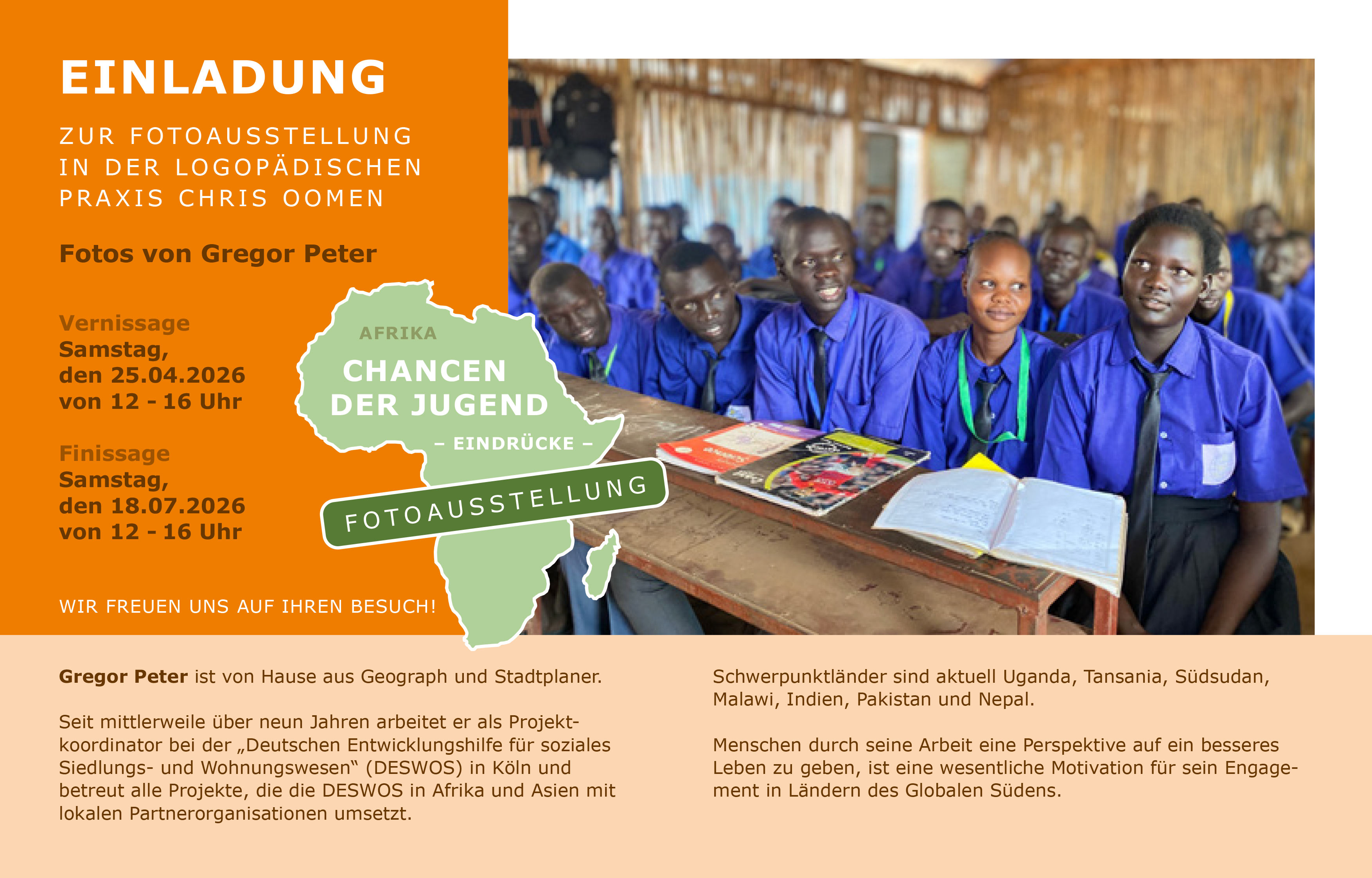 Wir freuen uns darauf, Sie am 25.04.2026 in unserer Praxis zur Ausstellungseröffnung zu begrüßen!