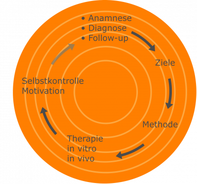Die Grafik links zeigt unser Vorgehen in der Planung, Durchführung und dem (vorläufigen) Abschluss der Therapie.